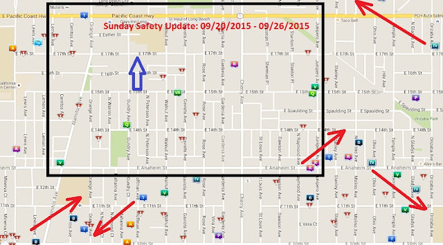 Beginning at Cherry and Anaheim there is a robbery leading up into assaults at either end of Cherry and the Spaulding alley as well as Cherry and 17th. The first is likely a dark alley at night, the second is where the smog check/ and a somewhat less than uninviting hotel is situated at the corner of PCH and Cherry. I would be very careful in either of those areas, at all times. That hotel does not screen their guests, and that alley is a little dark and claustrophobic for my tastes.